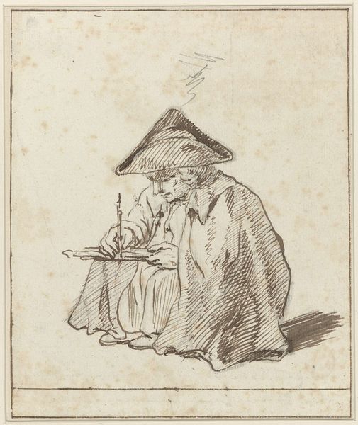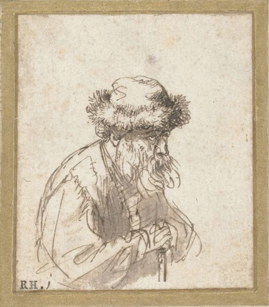 Editor: Here we have Louis Bernard Coclers’ “Portret van de kunstenaar Johannes Janson,” a pencil drawing made sometime between 1769 and 1787. The subject’s intense gaze and rather unusual hat give the portrait an air of eccentricity. What strikes you most about this piece? Curator: Immediately, I'm drawn to the construction of identity within the confines of the artistic milieu of the late 18th century. How does Coclers, through Janson's depiction, challenge or reinforce prevailing social structures linked to artistic identity? The hat, seemingly an unconventional choice, becomes a powerful symbol. Editor: A symbol of what exactly? Rebellion? Artistic freedom? Curator: Possibly both. Think about the socio-political landscape of the era. What does it mean for an artist to publicly declare a break from societal expectations? How did institutions dictate norms? And did portraits often contribute to a specific artistic persona, one that conformed to societal roles? Editor: So, you are saying that this portrait could be seen as a commentary on the role of the artist in society? Curator: Precisely. Every deliberate choice contributes to a wider discourse about art as an instrument of social discourse, in effect dismantling, if only on the surface, old models. Editor: It’s fascinating to think about this pencil sketch in terms of power dynamics and artistic expression. I initially only thought it was interesting because of the hat. Curator: And that's the power of art! It allows a conversation to emerge, shifting perspectives, sparking action, hopefully towards dismantling bias.