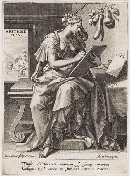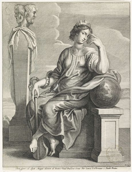 Editor: Fra Bartolomeo's "Prophet Isaiah," painted in 1516 using oil paint, strikes me as a vibrant, commanding presence despite its age. The figure's gesture is so emphatic. What hidden stories or symbolism do you find within this piece? Curator: The compelling figure, with the pointing finger, speaks volumes. Consider the book he holds; the words *Ecce Deus, Salvator Meus*, translate to "Behold God, my Savior." His gesture reinforces this written declaration, connecting vision, word, and the prophesied future. Editor: So the book isn't just a prop, but an integral symbol. What about the subject’s gaze and attire? Curator: Exactly. His direct gaze is equally critical – engaging the viewer, drawing us into the prophecy. The clothing too. While appearing classical, it’s crucial to remember religious iconographies adopted and adapted contemporary dress to make the divine accessible, to position sacred figures in dialogue with their present. Is this strategy still resonant, you think? Editor: That’s interesting; like updating an old story to speak to new audiences! It encourages personal interpretation while still conveying the original message. Curator: Precisely. Think about how Fra Bartolomeo uses light and shadow too – does that further amplify particular details or themes for you? Editor: Now that you point it out, the contrast illuminates his face and the inscription while parts of his robes fade into the background, almost as if to emphasize his insight over material existence. Curator: See how layers of meaning are constructed! Reflecting on *Prophet Isaiah* prompts us to contemplate our relationship to history and faith through art's visual language. Editor: I’ve learned a lot about how gestures, clothing, and the interplay of light contribute to a painting's lasting message and its place in cultural memory. Thank you!