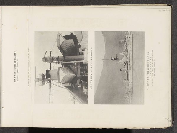 Curator: Here we have a gelatin-silver print, potentially from 1894, titled "Twee gezichten op forten te China," attributed to the Ordnance Survey Office. It presents a diptych, essentially two distinct photographic views of fortifications. Editor: My immediate impression is one of stark documentation. The monochrome palette and sharp, almost clinical focus render these fortresses with a cold objectivity. Curator: Precisely. Observe how the photographer strategically employs high vantage points. In each frame, a complex interplay of line and form emerges. The angular architecture of the forts contrasts markedly with the soft, undulating terrain. Editor: Agreed, and consider the materiality. The gelatin-silver process allows for remarkable detail—you can almost feel the rough texture of the stone and earth. It prompts one to think about the labor involved in both constructing and recording these sites. Whose hands built those fortifications? Who developed these prints? Curator: Indeed, the tangible quality of the print lends it a historical weight. The aging paper adds another layer, evoking the passage of time and the shifting interpretations of geopolitical power these forts represent. Editor: Also, notice the distinct hand-drawn type included as titles on each photograph. It almost reminds one of an inscription found on site – another layer in our archeological 'dig' through materials, contexts and history. Curator: An excellent point. I’m drawn back to those hand-drawn letterforms – the graphic style is rather unusual, it’s a curious marriage of objective realism and stylistic flourish. Editor: For me, the pairing of photographic realism with handcrafted additions highlights the constructed nature of both documentation and power. These images aren’t neutral; they are made objects representing larger geopolitical ambitions. Curator: I see what you mean. Looking closer I find myself intrigued by how the geometric structure mirrors and punctuates the natural terrain, offering the viewer multiple angles and perspectives in interpreting the history represented by it. Editor: It makes you ponder the complex narratives hidden in these fortified spaces, narratives that continue to evolve with each encounter.