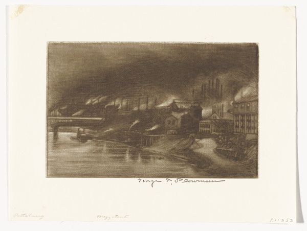 Joseph Pennell made "In the Works, Homestead" as an etching on paper, and it looks like he was really working it! The layers of dark ink create this incredible atmospheric depth, and the details emerge from the shadows. The texture of the paper is a big player here. Pennell's cross-hatching creates different tones, from velvety darks to almost translucent grays. There's one area, near the bottom left, where the cross-hatching gets super dense and chaotic. It’s like a little storm of lines, and it pulls you right in. The way he's rendered the smoke in the background is masterful. It almost feels like it's swirling off the page. Pennell’s work reminds me a little of Piranesi, who also used etching to capture epic, crumbling spaces. But while Piranesi was all about the grandeur of ruins, Pennell seems more interested in the gritty beauty of industry. Both invite us to consider the conversation between art and the way we experience the world.