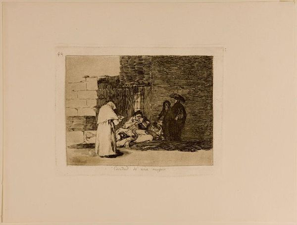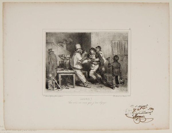 Curator: So, here we have "Two Smokers," a print by Jean Baptiste Michel Dupréeel, housed right here at the Harvard Art Museums. Editor: Immediately, I feel drawn into a scene of quiet, contemplative labor. There's a still intimacy despite the number of figures. Curator: It's remarkable how Dupréeel captures the mundane and elevates it. Smoking wasn't just a habit; it was a social ritual, a meditative act. You see that in the foreground figures, relaxed, perhaps even sharing stories. Editor: Right, the image is charged with gendered implications of leisure, labor, and class. Who has the time to smoke, and under what conditions? The composition invites us to question the power dynamics at play. Curator: I see the artist inviting us to consider our shared humanity, that we're all just trying to find a little peace in this crazy world. Editor: Perhaps—or maybe it's a commentary on the ways social structures dictate even our most intimate moments of relaxation. Curator: Well, either way, it gets you thinking, doesn't it? Editor: It certainly does. A snapshot of a time that challenges us to reflect on our own.