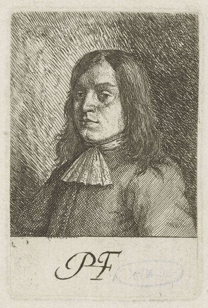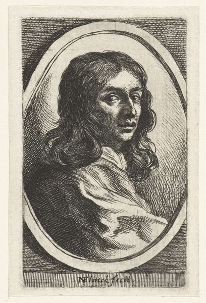 Wenceslaus Hollar created this small etching, ‘Head of a Young Man,’ during the 17th century. The subject’s gaze, averted to the right, draws us into the image, suggesting a world beyond the frame, a narrative unfolding elsewhere. This pose echoes across centuries. Think of ancient Roman portraiture, where a similar turning of the head signifies thoughtfulness or destiny. Consider, too, the subject’s flowing hair. Hair carries potent symbolic weight –strength, virility, freedom. From the unbound locks of a maenad in a Dionysian frenzy, to the carefully arranged styles denoting status in Renaissance portraits, hair speaks volumes. This boy's flowing locks hint at both youth and a certain untamed spirit. Observe how Hollar's delicate lines capture a fleeting moment of introspection. It’s a visual echo resonating with the enduring human quest for self-understanding. These images recur, carrying with them layers of cultural memory, each new iteration adding to the rich tapestry of human expression.