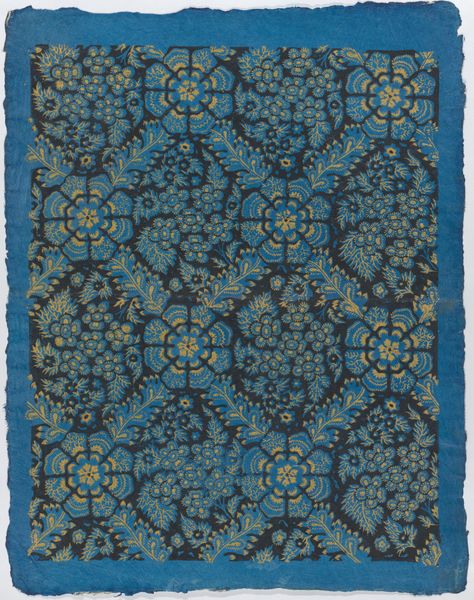 Curator: Here we have "Sheet with an overall pattern of dots and squares," created anonymously sometime between 1800 and 1900. The artwork, currently held at the Metropolitan Museum of Art, showcases a repeated motif through drawing and printing, seemingly intended for textile application. Editor: It's immediately soothing, almost hypnotic. The repetitive nature creates a sense of calm, while the two dominant colours give it a visual pop, it is also balanced by their softer tones. Curator: I agree. These kinds of repeating geometric forms were very common across folk art meant for functional objects. Their aesthetic success hinged on their integration into objects used everyday. The history of museum collections of these kinds of artworks is itself something of a complex socio-political narrative of taste. Editor: Absolutely, but what do you read from the pattern itself? To me, the dots evoke seeds, and the squares, stylized blossoms, suggesting a fertility or prosperity symbol. The colours also are reminiscent of royalty and riches, and possibly denote spiritual wealth. Curator: A lot of surviving printed patterns from the period borrow heavily from contemporary elite trends. The use of what was considered then advanced technologies, in particular, various printing methods, brought pattern design to different audiences across Europe. Editor: The distribution makes it possible for visual concepts to enter cultural memory more broadly. I agree it could simply be a pleasant design, but those little seeds, those squares, they whispered suggestions to the subconscious of home, of harvest, or growth, so very potent! Curator: It’s a tension woven through a lot of visual artworks throughout modernity and before that. Are forms that are easy to repeat a leveling democratic force, a capitalist industrial process, or something unique? I wonder if it will ever be known who designed the work? Or will its anonymity remain and define the sheet into eternity? Editor: Regardless, those images and the emotions they trigger remain the language of our subconscious, continuing to impact how we perceive, what we desire, what brings comfort, connecting across generations. That much remains a great cultural asset.