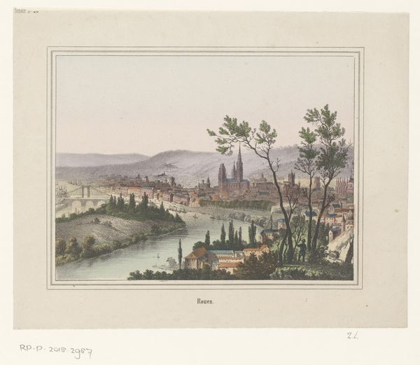 This print, "Gezicht op Trier", was created by an anonymous artist, using a combination of engraving and etching. These are printmaking techniques that rely on incising an image into a metal plate, which is then inked and pressed onto paper. The fine lines and detailed textures you see here are the result of this process. Consider the amount of labor involved in creating such a piece, from the initial design to the skilled handwork of the engraving. It’s easy to overlook the human effort behind mass-produced images, yet this print is a testament to the engraver's skill, and the wider role of reproductive prints within the art world. Prints like this one served as a means of disseminating views of cities to a broad audience, which in turn fuels our understanding of commerce and communication at the time. Appreciating the materials, making and context allows us to better understand its meaning.