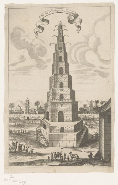 Curator: Let’s turn our attention to this print, titled "Zuil van Trajanus te Rome" – or Trajan's Column in Rome – created by Giovanni Maggi in 1651. It’s currently held in the Rijksmuseum collection. What are your immediate impressions? Editor: I’m struck by its formal grandeur, even in this small engraving. The intricate, spiraling detail around the column is so commanding. It gives a real sense of both height and the stories it might be holding within. And the architecture surrounding it is intriguing as it creates such contrast. Curator: Precisely. Maggi captures Trajan's Column as both a physical structure and a powerful symbol of Roman imperial power. The print emphasizes the column's role as a public monument, something deeply embedded within Rome’s urban and political landscape. Editor: I’m interested in what kind of narratives it encodes and transmits through history. Beyond being a marker of imperial success, what other sociopolitical themes come forward when we study it closely? Consider how a Roman audience then may read this display differently now, through, for instance, our lens of anti-imperialism. Curator: That’s key. The spiral frieze that wraps around the column depicts Trajan's military campaigns in Dacia. It acts as a visual narrative of conquest and domination. Its function was very clearly to show Rome's strength to its public. Editor: And this highlights how historical images are not static things. This artwork becomes a critical document ripe for re-interpretation by different groups who question structures of power, patriarchy, and control. Even in reproduction, the symbolic weight of the monument continues to resonate. Curator: Yes, indeed. Thank you. By considering both the historical context and the continuing presence of this image, we can fully appreciate its many layers of significance, inviting all audiences to reflect on the lasting influence of power structures.