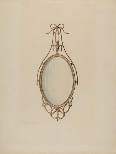 Curator: This delightful artwork is John H. Tercuzzi’s “Opera Bag,” likely made around 1939. It's a watercolor and drawing on paper. Editor: It's so delicate! The colors are soft, almost ethereal. I am getting a very tangible sense of a bygone era of opulence. Curator: Indeed! Think about the context. Such bags, these *necessaires*, weren't merely decorative. They held the essentials of a privileged social life: opera glasses, perhaps a fan, maybe even calling cards. Editor: Absolutely. But look at the materials. The interplay of watercolor and fine drawing elevates the depiction beyond a mere object. It begs questions about access, labor, and production during that era. Was this Tercuzzi's only artwork, a demonstration of craft by an unknown artist, or just one sample? Curator: An interesting perspective. Museums of the time, you know, displayed very few objects of functional art, like purses. Most artworks of decorative use like this ended up categorized outside the boundaries of “high art”. Editor: Precisely! These divisions are arbitrary. It appears functional, but if this “Opera Bag” wasn't meant to be touched or used...if its purpose was only display, what is its material role? Is the piece performing the status it once symbolized? Curator: Good point. Considering that most museums prioritize traditional artworks over decorative, is the context missing, maybe? This little treasure’s place within institutions reveals the historical and contemporary role of decorative arts. What it meant to then possess it, compared to now? Editor: It does makes one ponder the implications. Curator: It makes you reflect on changing value systems related to what's "worth" viewing. Thank you for this exchange. Editor: It's been very interesting indeed to reflect upon these intricacies together, and I do thank you too!