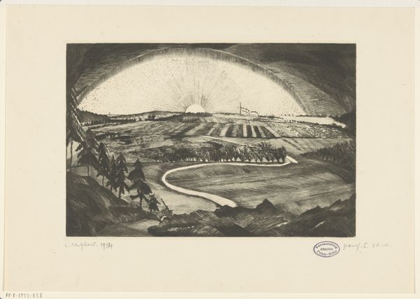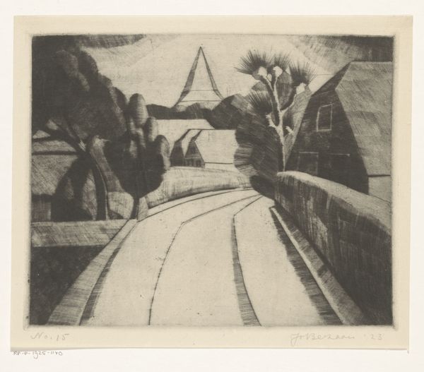 Jo Bezaan made this landscape print of a village with a mill and church in 1924. Look at the way Bezaan uses hatching and cross-hatching to build up tonal variation and suggest the forms of the landscape. The making of a print is a slow and meticulous process, mark by mark; it's almost meditative. The composition is really interesting, with a road snaking up the hill, drawing your eye into the middle ground. Notice how the texture of the fields changes as they recede into the distance. The marks that make up the thicket in the foreground are dense and chaotic, in contrast to the parallel lines on the road, giving a sense of depth. I love the dramatic sky, and how the dark clouds loom over the village, creating a slightly ominous mood. There's something of M.C. Escher in the way Bezaan uses perspective, but where Escher is all about formal tricks and puzzles, Bezaan is more concerned with capturing a sense of place. Ultimately, art is about exploring different ways of seeing.