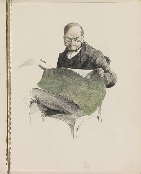 This hand-colored lithograph, titled 'Man ziet zijn eigen beeltenis in de Galerie Physionomique', was created in 1832 by an anonymous artist. It offers a sharp commentary on the rise of celebrity and the emergent culture of mass media in 19th-century Europe. The image depicts a bourgeois man engrossed in a newspaper, wherein he discovers a caricature resembling himself. The humor lies in the self-awareness, or perhaps lack thereof, of the subject. The artwork engages with the growing phenomenon of the "physiognomic gallery," a popular trend that used pseudo-scientific methods to link physical appearances with character traits, often with satirical intent. As an art historian, to fully understand this lithograph, I'd delve into the history of French print culture, exploring the rise of satirical journals and the social function of caricature. Through such research, we can better understand the complex interplay between art, identity, and public perception in 19th-century society.
