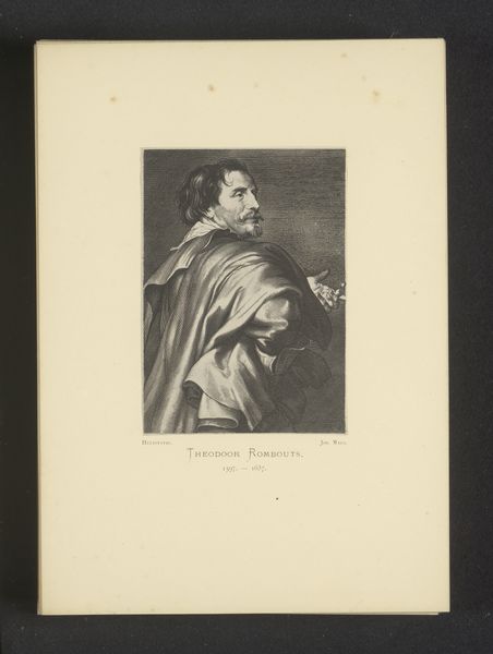 Joseph Maes made this reproduction of Paulus Pontius's engraving of Gerard Seghers in the 19th century. The image uses delicate lines and shading to portray the 17th-century painter. Notice how the composition focuses on Seghers's upper body, draped in fabric that adds a sense of classical grandeur. The use of hatching and cross-hatching creates tonal variations, giving depth and volume to the figure. The subject's gaze is directed off to the side, lending the image a dynamic quality, as if he is caught in a moment of contemplation. Maes's reproduction engages with the semiotic codes of portraiture, where elements like clothing and posture convey status and character. The formal qualities of line and tone work together to create a sense of historical continuity and artistic legacy. Consider how Maes's detailed line work invites us to reflect on the act of artistic reproduction and interpretation across time, destabilizing any fixed meaning. The image remains open to new insights and understandings.