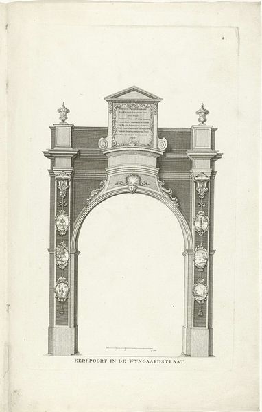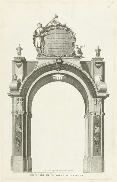 This etching by Gerard Sibelius depicts the decorated gates for William V's arrival in Veere in 1766. Observe the angels with trumpets above the arch. These figures, reminiscent of classical depictions of Fame, herald the arrival of the Prince, connecting him to ideals of glory and renown. Such imagery echoes through history. We see similar figures in Roman triumphal arches, announcing the victories of emperors, and in Renaissance paintings where angels proclaim divine messages. Here, the angels also suggest a divine blessing upon William V's reign. It's fascinating how the motif adapts; from pagan gods to Christian messengers, and here, to symbols of civic pride and the glorification of a ruler. The archway itself symbolizes transition and honor. Think of ancient Roman arches erected to commemorate military triumphs, structures designed to evoke awe and submission. The psychological effect is palpable: to pass beneath such a structure is to acknowledge the power and authority it represents. The image is charged with collective memory, a potent blend of historical, cultural, and emotional associations. The symbols in this etching, passed down through time, tap into our deep-seated understanding of power, glory, and the cyclical nature of history.