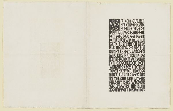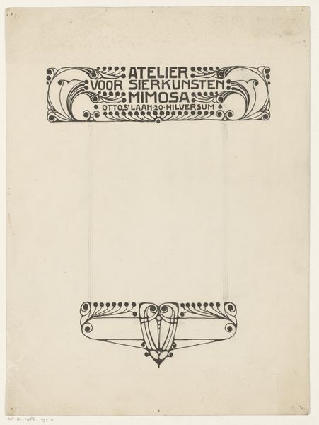 Elias Voet Jr. made this announcement for an evening of art appreciation in 1898 using a woodcutting technique. The design is simple yet striking: text stacked in block letters, a stylized emblem, and a decorative border, all rendered in sharp black lines against a white background. The choice of woodcutting speaks volumes. It's a laborious process. Each line must be carved away from the block, demanding careful labor and control. But this isn't just about aesthetics; it's about access. Woodcutting was a relatively affordable and reproducible medium. The material's inherent qualities of texture and the direct carving methods imbue the announcement with a sense of earnestness, suggesting an egalitarian approach to art appreciation. Voet likely used specific knives and gouges to achieve the clean lines and bold contrasts, engaging with a craft tradition that predates industrial printing methods. By understanding the materials and making involved, we can grasp its intended audience and the social values it represents. We can appreciate the announcement's role in fostering a community around art.