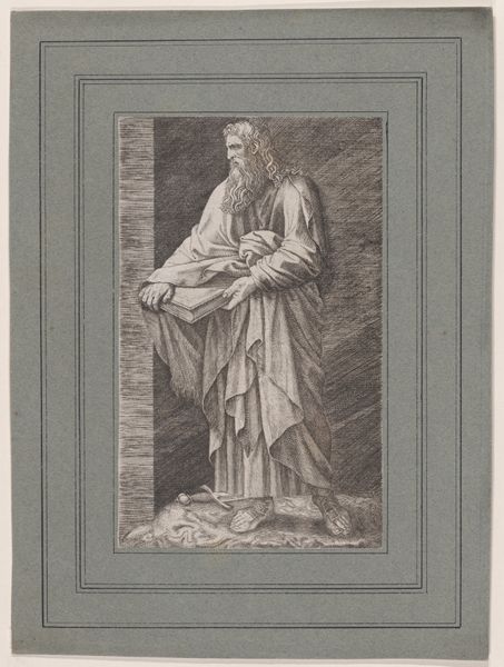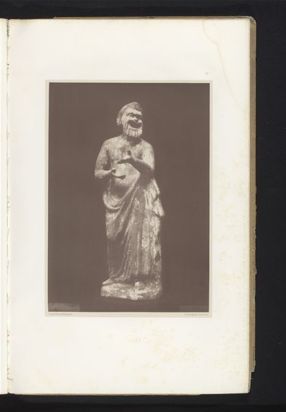 Curator: Looking at this gelatin-silver print from Edizione Brogi, dating to before 1907, we see a photographic reproduction of Michelangelo’s marble sculpture, the Moses, housed in San Pietro in Vincoli. Editor: My immediate reaction is one of sheer power, conveyed so beautifully through the density of the marble itself, the textures the sculptor coaxed from the stone, now captured here by the photographer. Look at the weight of the figure! Curator: Absolutely. The Moses occupies a crucial place in art history, reflecting the patronage system of the Renaissance and its key figures. This was originally commissioned for the tomb of Pope Julius II, and its tumultuous creation reflects the shifting allegiances and ambitions of the time. Consider also its monumental scale, meant to project authority. Editor: Indeed, that tension you describe feels intrinsic to the medium of marble. There is such resistance inherent to the material; stone is slowly coaxed and carved, which creates its own narrative of labor and technical expertise. The photograph then becomes another layer in this process of material transformation. Curator: The politics surrounding the sculpture's creation are just as compelling as the artistic virtuosity on display. The shifting power dynamics in the Church and the role Michelangelo himself played in navigating these treacherous waters adds depth to the piece, resonating even today through pieces like this photo reproduction. Editor: Precisely. Think about how Michelangelo approached the raw block. What tools did he use? What was the quarry like from where the stone was hewn? It grounds the mythology to remember the labor and raw materiality at play. This photograph abstracts us from that reality while paradoxically pointing us to its existence. Curator: It speaks to the evolving function of art – moving beyond simple aesthetic appreciation to becoming active vehicles for engaging with broader socio-political discourses. This sculpture in situ in the basilica would have very likely spoken differently than this image removed. Editor: Considering the ways a sculpture transitions into image through these early photography processes reminds me that these things do not exist in vacuums, either from an aesthetic or manufacturing viewpoint. Everything impacts everything else. Curator: A fruitful discussion indeed, revealing the artwork's impact both within its original socio-political setting and through its photographic retelling in later periods. Editor: An analysis acknowledging how both the artistic creation and photographic translation contribute to its meaning and impact. Thank you.