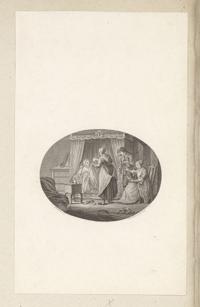 Jacob Ernst Marcus made this print of a man sitting at a table, sometime in the late 18th or early 19th century. It is an etching, which is a printmaking technique that involves using acid to cut into a metal plate, which is then inked and pressed onto paper. The fine lines of the etching allow for a high level of detail, and the artist skillfully uses this to create a sense of depth and texture. The lines give us the interior space, the furniture, and the man himself, seemingly engrossed with a doll. Consider how the printmaking process democratizes images. Rather than a unique painting accessible only to one owner, prints like these could be produced in multiples, influencing fashion, design, and social discourse. This etching participates in a wider world of commodity culture and the mass production of images. It invites us to consider the social and economic implications of the printmaking medium, and how it blurred the lines between art, craft, and commerce.
