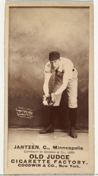 This photographic print of Joseph Crotty, a baseball player for the Sioux City Cornhuskers, was made in the United States around 1888, as part of a series of baseball cards for Old Judge Cigarettes. Baseball cards like these emerged from a culture of collecting that took off in the late 19th century. They were originally included in cigarette packs as a way to stiffen them and protect the product. But they quickly became a popular marketing tool, capitalizing on the growing popularity of professional baseball. What started as a functional insert evolved into a collectible item that blurred the lines between advertising, sport, and popular culture. These cards reflect the increasing commercialization of leisure activities and the use of celebrity endorsements, and were also a means of promoting ideals of athleticism and American identity. Studying these cards today involves delving into archives, team histories, and advertising records. They offer insights into the social and cultural values of the late 19th century, revealing how institutions shape our perceptions of sports and celebrity.