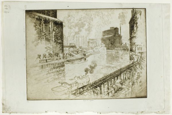 Joseph Pennell’s etching, ‘The Cut, Looking toward Ancon Hill’ captures a scene of immense engineering. The printmaking process itself, using acid to bite lines into a metal plate, echoes the industrial power on display. Pennell wasn't just representing a landscape, but a feat of human labor. Notice how the dense network of railway lines converge, creating a powerful sense of depth, and how the smoke rising from the locomotives blurs the distinction between the natural and the man-made. The scene pulses with the energy of construction, the trains and machinery rendered with intricate detail. Pennell’s composition implicates the viewer in the relentless activity of the canal's creation. He wants us to consider this landscape not as a sublime vista, but as a monument to industrial capability, and the cost of its realization. By focusing on materials, making, and context, we can understand the full meaning of the artwork, bridging the gap between fine art and the realities of labor and progress.