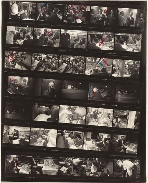 Robert Frank captured this contact sheet, titled ‘Congressional 4,’ using gelatin silver. We see frames of a train carriage where passengers are seated, interspersed with the artist's markings - crosses and circles scrawled over images. These marks—overlaid like ancient runes—prompt questions about choice and rejection, echoing the capriciousness of fate. The cross, an ancient symbol with roots in crucifixion and suffering, contrasts with the circle, a symbol of wholeness and continuity. The presence of these annotations echoes alchemical diagrams, where symbols guide a transformative process. Frank’s contact sheet becomes a map of a personal journey, an attempt to reconcile individual vision with collective experience. This interplay mirrors the way cultural symbols resurface, their meanings reshaped by new contexts.