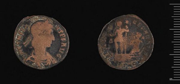Editor: Here we have a sestertius, a bronze coin, of Antoninus Pius. It's fascinating to see how the imagery has been preserved over time, even with the wear and tear. What stands out to you about its design and execution? Curator: The coin's circular format is crucial. Notice how the relief of Antoninus Pius's profile interacts with the circular boundary, creating a visual tension. The careful arrangement of lettering around the portrait enhances the composition. Editor: That's a great point. So, the placement of the image within the medium is important? Curator: Precisely. Consider also the materiality – the bronze itself, its patina, and how these contribute to our perception of age and authority. These elements are meticulously crafted to convey specific messages. Editor: I never thought about it that way. There’s so much more to see than just the historical figure! Curator: Indeed. By analyzing form and material, we gain deeper insight into the artist's intentions and the work's impact.