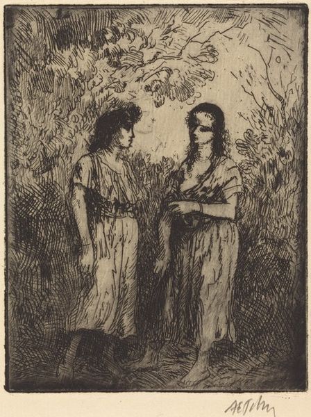 Anatoli Kaplan made this image of Holiday Makers, using lithography, a printmaking process that invites a real conversation between the artist and the stone. Look how Kaplan lets the marks accumulate! The stippled background sets a visual rhythm, like a gentle hum. Then, up front, the bold strokes that make up the figures. It's like he's inviting us to see the world through a screen of textures, layers of experience that shift and shimmer. I’m really drawn to the way he captures the folds and patterns of the fabric. Each line, each dot feels intentional, but the overall effect is one of spontaneity and freedom. Kaplan's work reminds me a bit of Käthe Kollwitz, in the way he uses a limited palette to convey deep emotion and the everyday struggles of people. But there's also a lightness here, a sense of joy in the act of making. It's a testament to the power of art to transform the ordinary into something extraordinary, inviting us to pause, reflect, and find beauty in the unexpected.