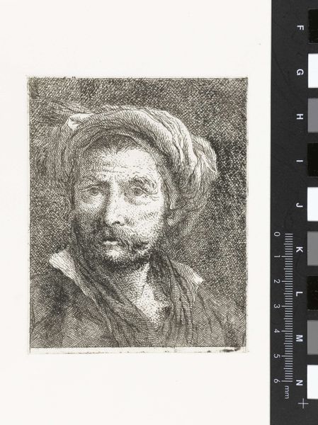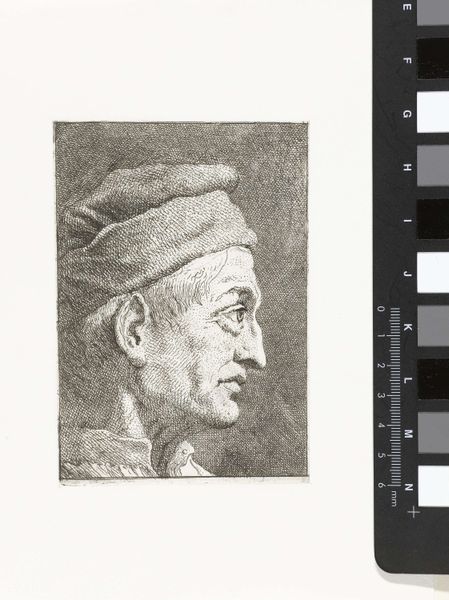 Giovanni Domenico Tiepolo etched this portrait of a man with a jeweled hat, capturing a face etched with time. The headwear isn't merely decorative. The hat, adorned with what appears to be a prominent central jewel, echoes the regalia of rulers and priests across epochs. Think of the jeweled crowns of Byzantine emperors or the elaborate headgear of ancient priests. These symbols denote authority, wisdom, or divine connection. Yet, here, the hat sits upon a face that tells a different story. The lines and weariness suggest a life of hardship, challenging any immediate assumption of power. This contrast evokes a tension, mirroring the human condition. The symbol of authority is juxtaposed with the reality of mortal experience. Such juxtapositions invite us to delve into the complex interplay between symbol and substance, archetype and individual, in the theater of human existence.