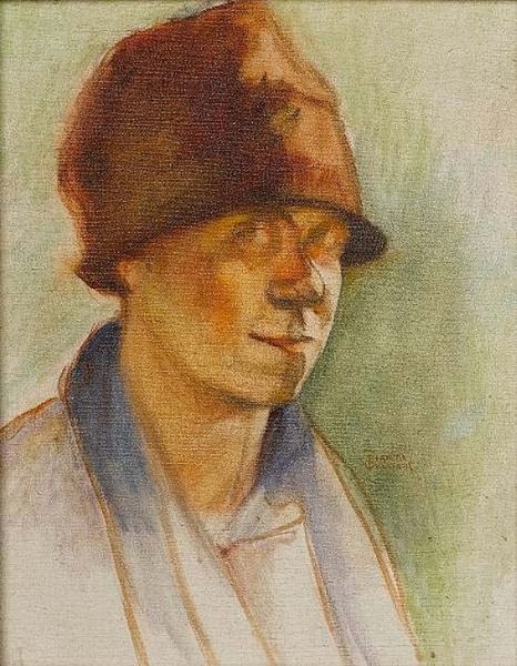 Béla Czóbel painted 'Czóbel Béka Tóth Ember' in 1904 with what looks like quick, confident strokes, a process of seeing and responding with paint. There's a real physicality to this piece, the way the brushstrokes build up the form of the figure. Look at the bright white of the shirt against the blue jacket, you can almost feel the texture of the fabric. The way the light falls across the face is particularly striking; Czóbel uses these warm yellows and oranges to create a sense of depth and shadow, really defining the contours of the face. It's like he's sculpting with light, each stroke contributing to the overall structure of the image. This feels like a cousin to some of Van Gogh’s portraits, where the act of painting is as important as the subject itself, that embrace of ambiguity is what makes art so endlessly fascinating.