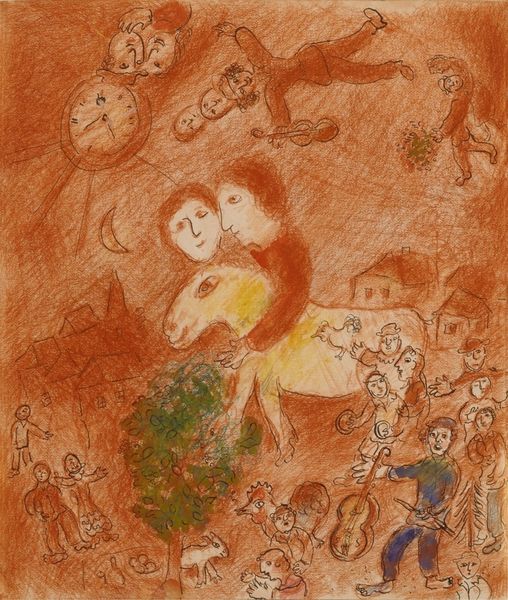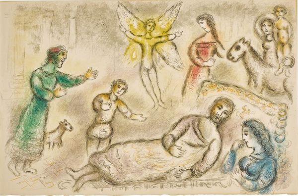 Marc Chagall presents us with ‘The Syrinx Fable,’ a work teeming with mythological figures, symbols, and vibrant hues. A pan-like figure playing his pipes is the central focus here; this iconography can be traced back to ancient Greece, where Pan was a symbol of nature, fertility, and untamed passions. Note how Chagall’s Pan is entwined with a nymph, a scene reminiscent of pastoral romances and the pursuit of pleasure. This motif echoes throughout art history, from classical sculptures to Renaissance paintings, each iteration carrying the weight of cultural memory and desire. Observe the figures in flight, a recurring theme for Chagall that represents freedom, escape, or perhaps a subconscious yearning for transcendence. This ethereal quality, combined with the dreamlike composition, taps into a deep well of collective unconscious. The fable of Syrinx is thus not merely retold but reimagined, its symbols resurfacing and evolving, echoing through the corridors of time and psyche.