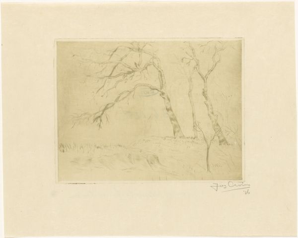 Richard Nicolaüs Roland Holst rendered this tree study in graphite, capturing its stark form with delicate precision. The tree, bare of leaves, stands as a potent symbol, its branches reaching skyward like supplicating arms, a gesture laden with historical and cultural weight. Consider how the bare tree, a motif stretching back to antiquity, appears in myriad contexts. From the barren trees of medieval depictions of the crucifixion, symbolizing death and sacrifice, to the stark landscapes of Romantic painters, evoking solitude and the sublime, this symbol is ever-present. Even in Holst's contemporary, Edvard Munch, in his painting 'Melancholy', the tree's bare branches reflect an inner turmoil and the barrenness of the soul. This motif resonates deeply because it taps into our collective memory, our shared understanding of nature's cycles and the human condition. The starkness can evoke feelings of vulnerability, but also of resilience, as we subconsciously recognize the dormant life within, awaiting rebirth. Holst's tree is more than just a botanical study; it's a mirror reflecting our deepest emotions.