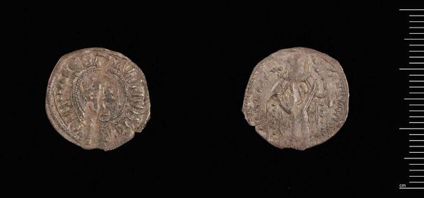 Curator: Here we have a "Politikon of John V," a small coin likely dating back to the reign of John V Palaiologos, Byzantine Emperor. Editor: It's so worn, like it has a story etched into every millimeter of its surface, a tangible connection to a distant past. Curator: Absolutely. These coins, circulated widely within the Byzantine empire, served not only as currency but also as a form of political communication. Editor: Right, a constant reminder of power dynamics. What did it mean for ordinary people to literally hold their ruler's image, and thus his power, in their hands? Curator: It reinforced a clear hierarchy, certainly, but also facilitated economic transactions and trade networks that shaped the empire's socio-economic fabric. Editor: It’s incredible to consider the journeys this little coin might have taken and the countless transactions it participated in. Curator: Indeed. Its presence here in the Harvard Art Museums underscores the enduring relevance of Byzantine history. Editor: Yes, a tiny object that speaks volumes about power, exchange, and the echoes of history in our present.