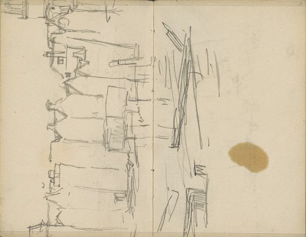 This is George Hendrik Breitner's sketch of the Oude Haven in Rotterdam, likely made directly in a sketchbook. Observe how Breitner uses the raw quality of graphite to capture the essence of the port. The composition is split across two pages; on the left, quick, scribbled lines define the distant shore, while the right page is dominated by vertical strokes suggesting the masts of ships and the structures of the harbor. The sketch isn’t about detailed representation but captures a sense of place, a fleeting moment of urban life. Breitner was interested in the transient effects of light and atmosphere, a concern he shares with the Impressionists, though his style remains distinctly his own. Note how Breitner uses line to suggest depth and volume, leaving much of the scene undefined, inviting the viewer to participate in constructing the image. This sketch reminds us that art is as much about suggestion as it is about depiction, engaging us in a visual dialogue.