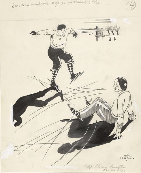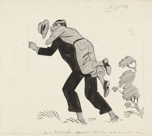 Jan de Waardt created this drawing called "Leechers, Authority and Oppression," using pen and India ink, freely after Jüttner. De Waardt was a Dutch artist whose life and work intersected with significant social and political issues of his time. This piece appears to critique authority, using a chain of figures to visualize a system of oppression. The figures at the top, dressed in formal attire, place their hands on the backs of those below, creating a human pyramid of power. The person at the bottom is crushed under the weight, a stark representation of exploitation. The emotional weight of this image is heavy; one can imagine the physical and psychological toll on those who are burdened by the system. De Waardt seems to ask us to consider the human cost of unchecked authority.
