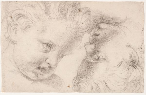 Editor: Here we have "Study of Heads and a Dog's Head," a drawing and print by Gilles Demarteau from the late 18th century. It's quite striking how the faces are arranged; they seem to almost blend into one another. What can you tell us about this piece? Curator: The material choices – the ink, the paper, the printing process itself – speak volumes about artistic production in Demarteau’s time. Think about the labor involved in creating a print like this. Each line is carefully etched or engraved, allowing for reproducibility and wider consumption of the image. It moves art from the unique object to something more accessible, a commodity even. Does that change your interpretation? Editor: It does make me think differently. I was focused on the artistry of the drawing, but now I'm considering it as a product of labor, disseminated to a wider audience. Did this process elevate or cheapen the artistic merit at the time? Curator: That's the central question, isn’t it? Consider how this kind of printmaking democratized access to imagery, spreading ideals of beauty and taste to a growing middle class. But also, consider the potential exploitation of the printmakers themselves. Were they considered artists or artisans? Editor: It blurs those lines. So, analyzing the materials and production helps reveal those tensions and shifts in social value. Curator: Precisely. It shifts our focus from the individual genius to the systems and people that bring art to life. Understanding this reveals not only art but its context within social conditions of possibility. Editor: I see how focusing on the materiality and production reveals so much about its time. Thanks! Curator: My pleasure, that kind of understanding allows the art object to speak much more clearly about human interaction, production and culture.