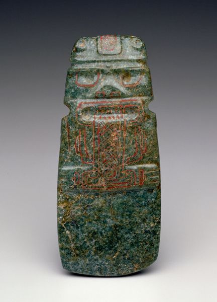 This celt was carved out of stone by an unknown artist at an unknown time. The celt is an axe head and depicts a face at the top, and what looks like a house at the center. A celt is a prehistoric tool with a beveled cutting edge. These were used for woodworking and were usually made of stone or bronze. Stone celts such as this one date back as far as the Paleolithic period and as recently as the Neolithic period. The meaning of the face and house is unknown, but it seems likely that they held some kind of social, cultural, or religious importance within its society. Was this celt a marker of status? Did it have a function in ritual? Art historians can examine the material culture from the period to speculate about its meaning, bearing in mind that there is much we cannot know. This celt is a reminder that our understanding of history and culture is always evolving.