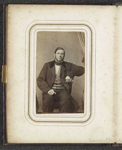 This is Henri Pronk’s portrait of a man in a long coat, leaning on a stack of books. The sepia tone of the photograph gives the portrait a feeling of distance. The subject is presented in a formal arrangement, seated and posed with a hand thoughtfully placed to his face. The man is carefully positioned within the frame; his figure takes up most of the space, with the books acting as a visual anchor. The books and draped fabric are elements that structure the image, establishing both depth and a sense of formality. Pronk uses light and shadow to articulate the man's features, drawing our attention to his gaze. In the context of portraiture, this work operates within established codes of representation. However, the man's contemplative pose challenges the stoic conventions typical of formal portraits, inviting the viewer to engage in a kind of psychological reading. The textures and tones of the sepia medium contribute to this effect, lending the scene an air of introspection. Ultimately, the interplay between form and expression is what makes this image so engaging. Pronk asks us to consider what it means to portray an individual—not just as a physical likeness, but as a complex subject.