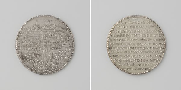 This silver medal commemorates the relief of Groningen in 1672, an event deeply interwoven with the city's identity. Dominating the medal's face is the coat of arms of Groningen, a potent symbol of civic pride and autonomy. Above it, a crowned lion rises— a figure of strength and vigilance but also a symbol of the Dutch Republic. This heraldic lion, ever watchful, reminds us of similar figures across time. Think of the Lion Gate at Mycenae, or the lions guarding ancient Near Eastern temples. Each appearance embodies power, protection, and cultural memory. Though separated by centuries, these symbols tap into a shared, subconscious understanding of authority. Consider how such symbols evolve. Initially, the lion might represent tribal power; later, it embodies royal authority, and eventually, civic pride. The image of the lion resonates, a powerful force engaging viewers on a deep, subconscious level, evoking the city's resilience. It highlights the non-linear, cyclical progression of symbols, continually resurfacing and evolving.