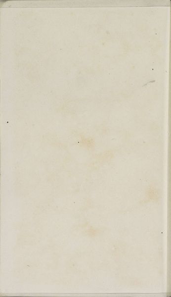 Editor: So this is 'Studie' by Johannes Tavenraat, dating somewhere between 1839 and 1872. It's an ink drawing on paper and is currently held at the Rijksmuseum. Honestly, at first glance, I'm struck by the... emptiness? The vast expanse of paper is only broken by that small mark at the bottom. What do you see in this piece? Curator: I see a composition defined by absence, where the negative space dominates the visual field. Note the texture of the paper itself; the artist uses this as a structural element. The off-white hue and subtle variations create a depth, a layering. The mark at the bottom acts as a focal point, almost an anchor in this sea of blankness. How does that mark relate to the rest of the space, do you think? Editor: I suppose it's there to give it context? I can see that its presence does give some balance to the composition... but still the negative space overwhelms everything. What does that communicate? Curator: It directs the eye and invites inquiry. Does that single shape represent something discernible, a landscape element perhaps? Or is it purely an exercise in form? What are its internal structural relationships and proportions? By creating an unequal weight and breaking symmetry in that way, we perceive the whole sheet as one cohesive expression. Editor: I guess I was so caught up with the negative space that I hadn’t fully considered that bottom section and its impact. Now, thinking about the materials, and their interplay, helps to tie the whole composition together. Curator: Precisely! Paying attention to how forms create asymmetrical, unequal tension can be deeply engaging. Editor: It has broadened my perspective to view that small shape less as a detail and more as a signifier within the larger structural framework. Thanks!