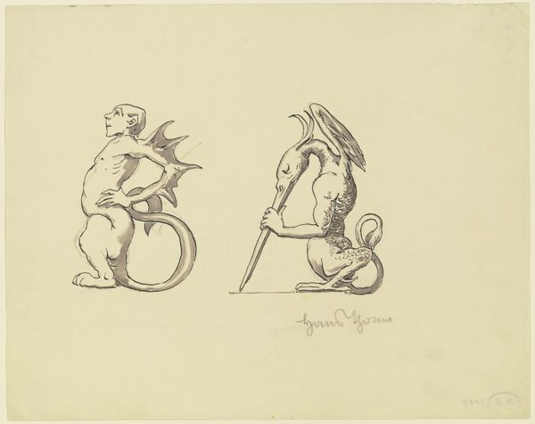 Editor: Here we have Abraham Bosse's etching, "Dwerg met kruk en beensteun; Dwerg met zwaard, in aanvallende houding," likely created sometime between 1621 and 1676. The contrast between the figures' stooped postures and their intended actions is striking. What stylistic choices are notable here? Curator: Let us consider the linearity of the figures. The etching, as a medium, inherently lends itself to a strong emphasis on line. Notice how Bosse utilizes this characteristic to delineate the contours of the figures, defining their forms and postures with remarkable precision. The density of lines is very intentional. Editor: You’re right, I notice now how the thickness and closeness of lines help suggest areas of shadow and volume on their forms, even with the lack of color. Curator: Indeed. The interplay between the positive space occupied by the figures and the negative space surrounding them is crucial. Ask yourself, how does the arrangement of these elements within the frame contribute to the overall compositional balance? Editor: I see how the figures occupy distinct, separate spaces, almost like panels in a comic. Does this separation contribute to a narrative reading? Curator: It could. It certainly highlights the independent existence and inherent characteristics of each figure. Though similar, their compositional roles are separate, do you agree? Editor: That's a great way to put it. Considering the line work, space and composition allows us to think about these sketches in a whole new light. Curator: Indeed. These elements of form speak to the larger artistic vocabulary. By recognizing this, our analysis may attain greater precision.