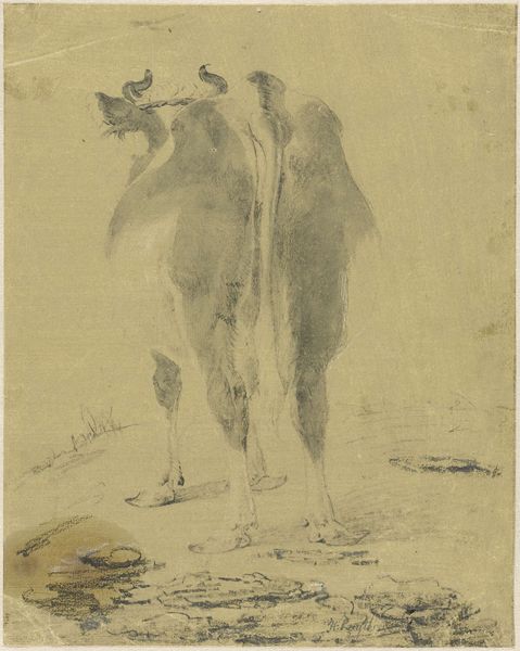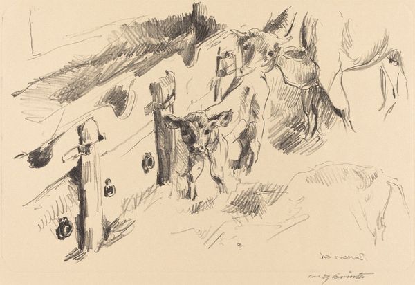 Curator: Ah, another journey gone awry. Look at this drawing from 1867, “Don Quixote, Sancho Pansa and the Dead Mule” by Honoré Daumier, held at the Musée d'Orsay. Editor: Bleak. Utterly bleak. A romantic’s tragedy played out in muted grays and browns. The dead mule is just sprawled there like discarded potential. What's your read on this scene, personally? Curator: There's something beautifully tragicomic about it. Daumier captures the utter deflation of grand ideals. The charcoal, so expressive and almost violent in its application, mirrors the chaotic, tilting world Don Quixote inhabits. His dreams often lead to this—failure, exhaustion, even death, rendered with an underpainting suggesting watercolor and oil paint. It's a very human condition that he renders tangible and quite real. Editor: Indeed. Think about the socioeconomic context. France was in turmoil during this period, grappling with rapid industrialization and political upheaval. Daumier, known for his social commentary, might be using Quixote’s plight as an allegory for the disillusionment of the working class—a populace chasing windmills of their own while capitalism leaves them, well, dead in the dust. A harsh indictment, no? Curator: Absolutely! But Daumier had a soft spot for dreamers. It's in the tenderness with which he renders the weary faces of Quixote and Sancho, despite the looming landscape—that even includes elements of romanticism. The contrast of scale: immense, indifferent, sublime but somewhat removed from realism. Editor: The vast, unforgiving landscape... it's almost mocking their ambition, wouldn't you agree? This is genre-painting, figuration in the extreme—all in service of showing just how easily the body can be crushed under the weight of dreams. Curator: I feel Daumier is ultimately reminding us that even in failure, there is a quiet dignity, maybe beauty? It’s a beautiful sketch. Editor: Dignity forged in the crucible of reality. Sobering, really. It definitely compels us to reconsider not just art, but society itself and our place within it.