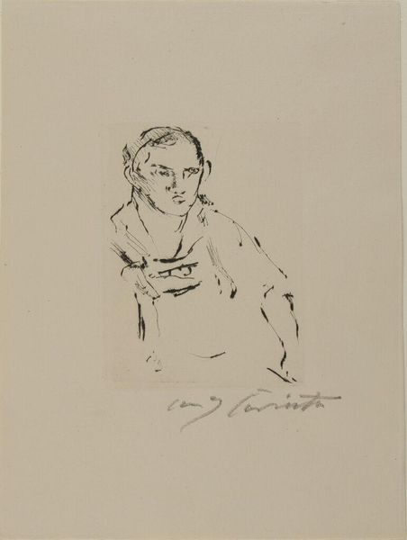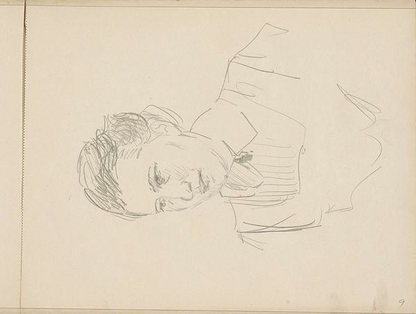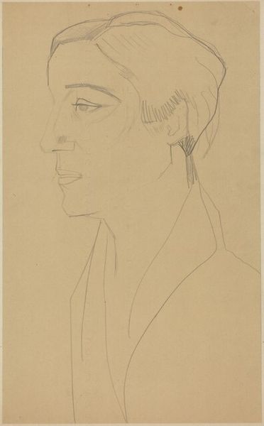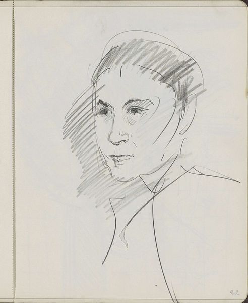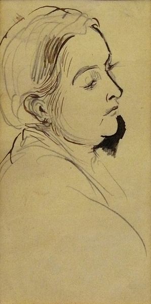 Curator: Up next, we have a work titled "Portrait Head of a Man Looking Left." It’s attributed to Mark Rothko. It seems to be an ink drawing, maybe from a sketchbook? Editor: There’s an immediacy to it, isn’t there? Like a snatched moment, all captured in quick, decisive strokes. You feel the artist’s hand really moving. It reminds me a bit of early modernist sketches where they were testing ways of expressing form. Curator: Yes, it certainly feels like an exercise in form. Look at the varying densities of line—the way he builds up the shadows on the neck and around the eye socket using very different marks. The planes of the face really turn. I think Rothko used a masterful play between the defined edges and areas of near abstraction that he builds here. The pen lines around the jaw are particularly striking. Editor: It makes me wonder, though, what he was looking at, what he was thinking about while capturing this face. There’s a slight downward tilt to the head, a pensiveness. Is it just a technical study, or something more personal seeping through? We often forget that even an artwork stripped of overt emotion can possess an enormous affective resonance, in the most understated way. I think this work offers a potent instance of it. Curator: Interesting that you interpret that pose that way, to me, it's more the physical demands of working with ink than mood, although the two concepts can never really be separated. Notice, too, the relative blankness below the shoulders. The lines simply vanish, it's more about a sense of placement and scale overall. Editor: I think there’s almost a theatrical quality about such formal restraint as well, almost Brechtian, where technique seems almost to work in contradiction to the form represented in the drawing. This encourages us to consider and reconsider the relationship that has formed. Curator: The raw nature is refreshing because we associate him almost exclusively with monumental abstractions and the spiritual qualities thereof, to see something unrefined is very special and offers great insight into process and beginnings. It reminds me never to trust reputation and what something might promise. Editor: It also underscores that genius isn't solely about final polished product; it is also about constant experimentation, testing, trying. That the process is actually always part of the realization, not separated or distinct from it.
