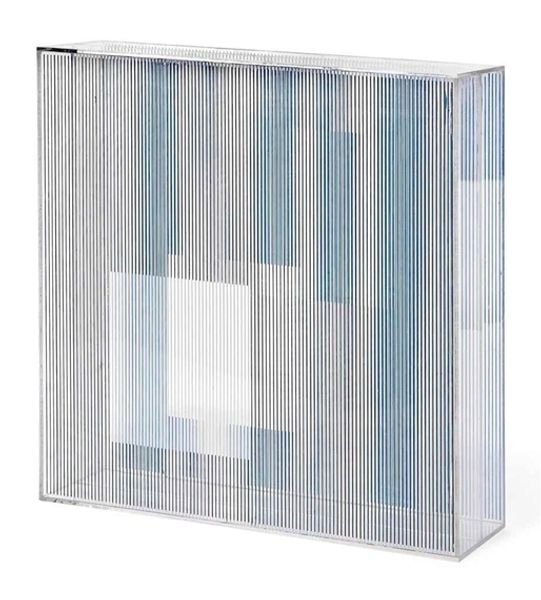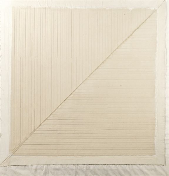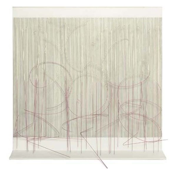 Curator: We’re looking at Jesús Rafael Soto’s "Vibration Blanche," created in 1995. What are your initial thoughts? Editor: It gives the impression of being almost immaterial—a shimmer in space more than a solid object. A cool and ethereal cloud of vertical lines. What is this thing made of exactly? Curator: Precisely! Soto was after that ephemeral quality. This installation uses nylon threads hanging within a simple square frame. Light and movement become active materials. Editor: Ah, nylon. That gives it a really interesting mid-century feel when plastics were being wholeheartedly embraced. How would you say Soto utilizes this synthetic material? Curator: The threads, precisely arranged, respond to the slightest air currents or shifts in the viewer’s perspective, creating a dance of light and shadow. It feels like the solid, Cartesian grid is disintegrating. Editor: The use of nylon here almost renders this "solid Cartesian grid" as mutable and unstable as air itself, blurring boundaries between structure and flexibility. What draws me in, I guess, is the repetitive work of installation itself - labor almost disappearing into form. Curator: I agree completely. In a sense, this vibration transforms static architecture into an experience, making us hyper-aware of our surroundings. He saw vibration as life, pure energy. Editor: Well said! Soto saw vibration as pure energy and sought to convey this vibration through repetition. And I agree completely about making us hyper-aware of our surroundings; the simplicity is disarming! It asks us to look harder. It encourages close looking as an active form of seeing, connecting art and production together in surprising ways. Curator: Definitely an artwork that challenges traditional viewing practices. Seeing isn’t just about registering an image but about participating in the visual field, feeling its energetic presence. Editor: Absolutely! It pushes us to consider not just what the art *is*, but *how* it's made, experienced, and fits within broader cultural narratives of materiality. A very compelling interplay.