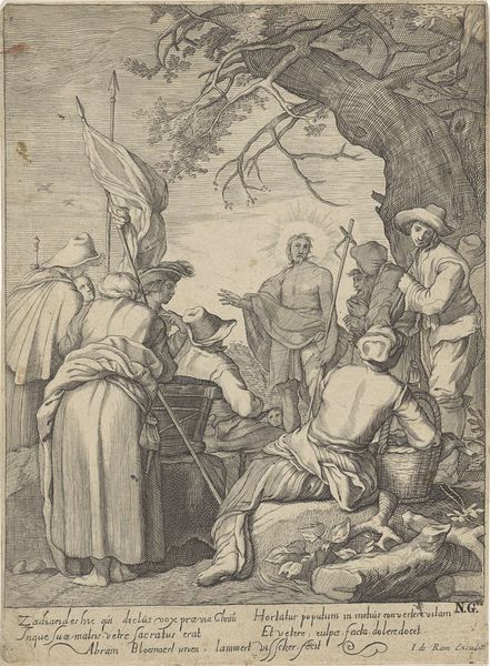 Editor: Here we have Georg Pencz's "Joseph Put into the Pit," a small but mighty engraving. The mood feels tense, conspiratorial even. What secrets do you think are lurking in those densely etched lines? Curator: Secrets? Oh, absolutely! Look how Pencz uses the swirling lines to almost suffocate Joseph, the poor bloke. It’s like the brothers' collective guilt is physically pressing down on him. Do you feel the unease radiating from that tree looming in the background? It's a silent witness, almost anthropomorphic in its judgement. Editor: It’s like the whole landscape is complicit! I hadn't thought of that. Curator: Exactly! Pencz isn't just illustrating a biblical story, he's exploring the very nature of betrayal. It's a visual symphony of moral ambiguity, isn’t it? A tiny stage for a grand drama. Editor: It's certainly given me a lot to think about. Thanks for pointing that out! Curator: My pleasure! It's pieces like these that remind us that art is never just what you see, but what you feel, what you question, what you dare to imagine.