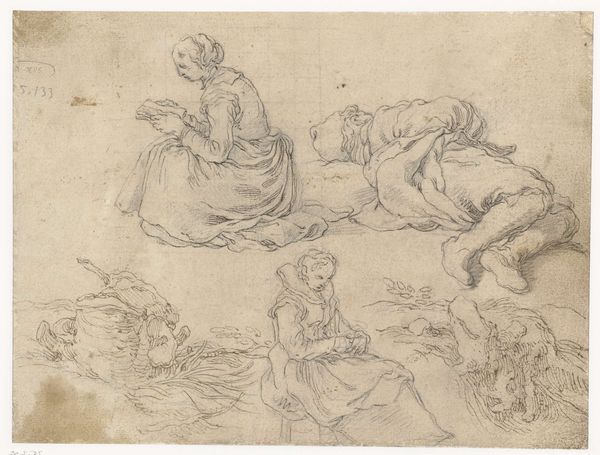 This is "Varende engelen met het Christuskind," or "Sailing Angels with the Christ Child," an etching by Theodoor Schaepkens. Observe how the composition centers on a boat filled with figures, sharply rendered against the openness of the water. The texture, achieved through fine lines, adds a tactile quality to the scene. Schaepkens invites us to consider the structural elements of religious art. Note the contrast between the dense grouping of figures and the surrounding emptiness. The angels and Christ Child are arranged in a boat, evoking a journey. Schaepkens presents a semiotic system, where the boat might signify the Church, carrying the faithful through life's waters. The artist destabilizes traditional religious iconography by placing these divine figures in a mundane setting. This challenges fixed notions, prompting a re-evaluation of the familiar. Ultimately, the artwork functions as a cultural discourse, inviting viewers to reinterpret religious narratives.