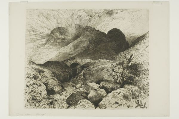 Editor: This is Christoffer Wilhelm Eckersberg's "Entrance to the Baumannshöhle in the Harz Mountains". It's a beautiful drawing, very romantic, but also a bit ominous. What symbols do you see here? Curator: The cave opening is a potent symbol, evoking mystery and the unknown depths of the earth. Caves are often associated with both refuge and danger, the womb and the grave. Editor: So, the cave represents the psychological landscape? Curator: Precisely. It’s also interesting to consider what it meant to depict nature in this way at this time. How do you think this imagery contributes to the cultural memory of landscape? Editor: It presents the landscape as something to be explored, but also to be wary of, I suppose. Thank you. Curator: An evocative reminder of the enduring power of symbols.