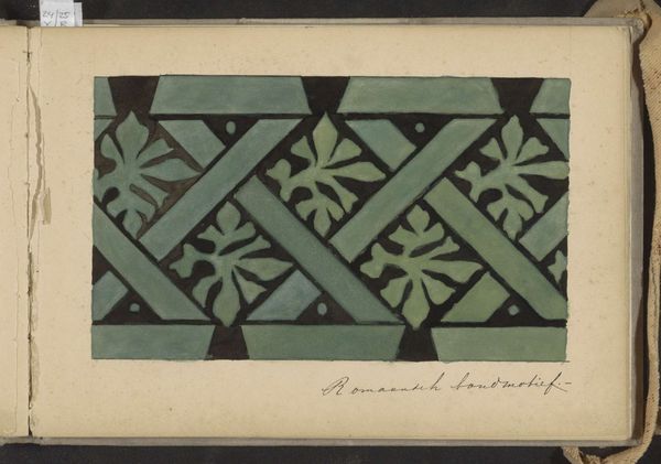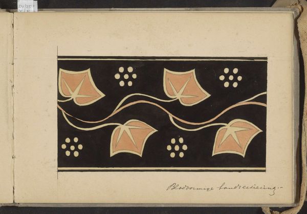Editor: So, here we have "Marmeren inlegwerk met bladeren uit de Santa Croce te Florence," which translates to "Marble inlay with leaves from Santa Croce in Florence," created sometime between 1890 and 1922, using ink and drawing on paper. It's pretty, but almost austere in its simplicity. What draws your eye when you look at it? Curator: You know, it's interesting you say "austere," because I find it simultaneously grounding and uplifting! The stylized leaves winding around those geometric flowers suggest a beautiful dance between nature and human artistry, doesn't it? The stark contrast makes it pop, even though the palette is so restrained. Perhaps it's the connection to the Arts and Crafts movement – a yearning for handcrafted beauty amidst industrialization, almost a love letter to simpler times. What about the limited colour palette... do you think that helps the work? Editor: Absolutely, the minimal colors emphasize the forms. Without them, it would just blend together! Considering the Santa Croce connection, do you see any hints of Italian Renaissance influence in this design, perhaps translated through the Arts and Crafts lens? Curator: Ooh, now you're cooking! The symmetry and balanced composition certainly nod to Renaissance sensibilities. However, the Arts and Crafts spirit softens that formality, infusing a sense of organic flow. Imagine this in marble inlay, as the title suggests, adorning a Florentine space… Wouldn’t it whisper tales of artisans pouring their heart into every piece? I feel the slow burn, can you feel it? Editor: It’s really amazing to think about how historical movements intertwine and reappear, almost like those winding vines, right? Thanks, I see it in a whole new light now. Curator: Exactly! It's about uncovering the stories *within* the art. And hopefully, weaving our own tales along the way.