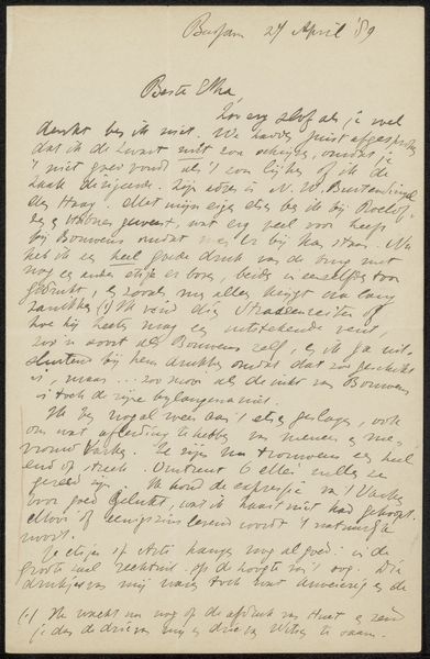 Editor: Today we're looking at "Brief aan Philip Zilcken," a pen and ink drawing by Henri-Charles Guérard, created sometime between 1867 and 1897. At first glance, it looks like a handwritten letter... what do you see in this piece? Curator: Well, beyond the obvious textual content, it’s crucial to acknowledge the context in which a letter like this emerges. Consider the late 19th century, a time of burgeoning artistic societies and salons, but also intense competition and exclusion based on class, gender and academic background. Editor: So, you are suggesting this letter may reveal more than it states explicitly? Curator: Absolutely. Who gets a seat at the table, who has access to these powerful networks of patronage? Look closely, and consider this 'société' – who is included, and more importantly, who is excluded? We must interrogate the power structures at play here. What does it mean to be nominated 'sociétaire'? Editor: It makes me wonder about the barriers and hierarchies of the art world during that time... Was there an established academic route versus those who self-organised? Curator: Precisely. This letter acts as a tangible connection to a historical moment where artists were actively negotiating their positions within complex social and political landscapes. Also, consider who Philip Zilcken was and his place in that structure. Editor: This has shifted my perspective – it’s no longer just a letter, but a document reflecting complex negotiations of power and belonging within the art world. Curator: Exactly, art history is not separate from the social dynamics.