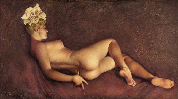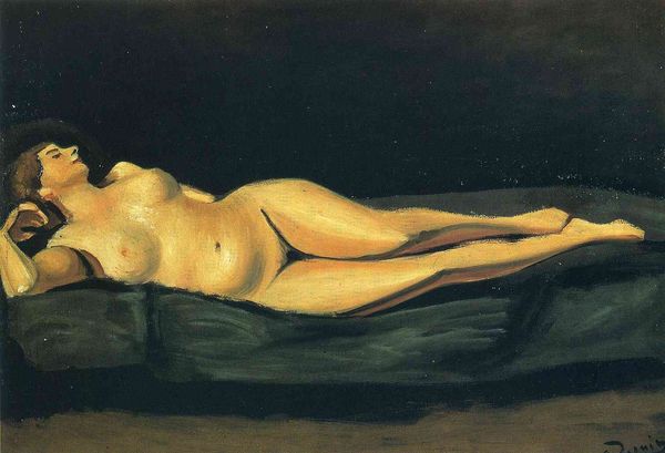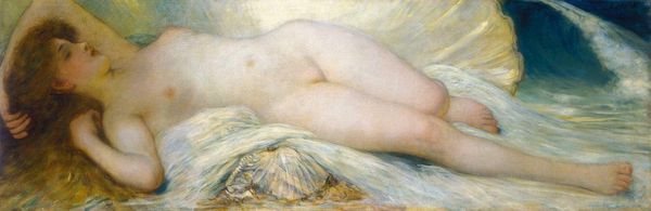 Editor: We are looking at "Reclining Nude," a charcoal drawing from 1888 by William Merritt Chase. The stark contrast and somewhat unfinished quality give it a very intimate and private mood. What do you see in this piece? Curator: I see a study in gesture, a fleeting moment captured in charcoal. The reclining nude is a recurring symbol, think of the Venus, often tied to ideas of beauty, fertility, and even power. What happens when we divest her of her classical allegories, the pearls, the gardens, and leave her…undone, in a sense? Editor: That's interesting. So the *lack* of the typical Venus imagery becomes its own kind of statement? Curator: Exactly. This drawing invites us to consider what remains when those symbols are stripped away. It's a question of vulnerability. The raw, exposed body, drawn with such immediacy, engages the viewer in a far more psychological way than many idealized nudes. The use of charcoal – such a direct medium – heightens this effect. Do you see how the dark smudges both obscure and reveal her form? Editor: Yes, almost like she's emerging from, or dissolving into, the shadows. The areas left unrendered give it this sense of transience, a fleeting impression. Curator: It’s also worth thinking about who would be looking at a piece like this at the time. Think about how that gaze and access shifts meanings. Editor: That’s a lot to think about, but I appreciate the reminder about the cultural context. This has definitely changed the way I see it. Curator: Precisely! Now, seeing how artistic skill intertwines cultural memory makes even something like a quick charcoal sketch a window to shifting values.