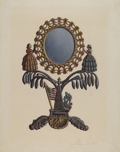 Frances Lichten made this watercolour drawing of a mirror, though we don't know exactly when. Lichten's mark-making here feels deliberate, controlled, not exactly loose, but definitely confident. I love the way the colours are so soft, almost faded, giving it this antique, dreamlike quality. The mirror itself is just a smudge of grey, but that's enough. You can almost see your own reflection blurring into the past. There's a lot going on in this image, from the two ladies holding the frame, to the American flag and obelisk at the bottom. It's a decorative piece that is so packed with detail. It reminds me a bit of some of the folk art that was happening at the time, this sense of trying to capture something real, but it ends up being more like a memory. Like Joseph Yoakum, another artist who blended real and imagined landscapes, Lichten invites us into a world that feels both familiar and strange. And that's what art is all about, isn't it? Holding up a mirror to the world, but seeing something completely new.
