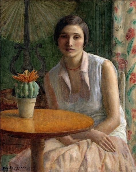 Roderic O'Conor made this painting of a seated woman, probably in the early 20th century, with oils. The brushwork here is what really grabs me; it’s all about these deliberate, directional strokes. It feels like O’Conor is thinking through every single mark. The real action for me is in the red dress. Look closely. It’s not just one flat color, it's built up with layers of different reds and oranges. It’s like he’s trying to capture the light as it hits the fabric, making it almost vibrate with energy. You can practically feel the texture of the paint, thick in some places, thin in others. The way he defines the contours of her body with these blocks of color is so interesting, so immediate. It reminds me a bit of Matisse, actually – that same commitment to color and simplification. But O’Conor’s got a rawness, a kind of searching quality, that feels unique. These paintings are never really "finished," just moments caught in time.