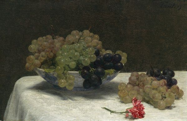 Henri Fantin-Latour's "Pommes et Raisins" presents a deceptively simple arrangement of fruit, painted with oils. Yet, within this intimate still life, potent symbols of nature's abundance and fleeting beauty reside. The grapes and apples, common motifs, carry deep cultural and historical weight. We find grapes, symbols of fertility and transformation, echoing through time from ancient Roman bacchanals to Christian eucharistic celebrations. Their presence invites a connection to Dionysian ecstasy and spiritual communion. The apple, laden with associations of temptation and knowledge since the time of Adam and Eve, speaks to our primal desires and moral ambiguities. Consider how these fruits, seemingly static in their painted form, evoke a sense of transience and the inevitability of decay. It’s as if Latour is reminding us of the cyclical nature of life, death, and rebirth, a theme deeply embedded in our collective consciousness. Their arrangement elicits an emotional pull, a subtle reminder of the inherent beauty found in the ephemeral moments.
