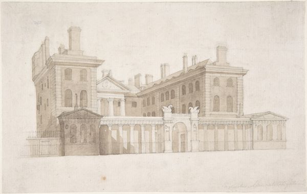 John Carter captured the south aspects of Lea Castle in Worcestershire with pen and watercolor wash. Carter, an artist and architect, lived during a time of significant social change in England. He bore witness to the shift from the Georgian to the Regency period, and he was deeply involved in the Gothic Revival movement. Carter's identity as an antiquarian and draftsman shaped his artistic output, as he meticulously documented architectural details of historical buildings. “South Aspects of Lea Castle, Worcestershire, Great Court” illustrates Carter's antiquarian interests and perhaps his nostalgia for a medieval past. His choice to portray castles connects to broader themes of national identity. During this period, architectural representations were used to reinforce ideas about heritage, power, and cultural memory. How does this image echo with modern themes of identity, preservation, and national narrative? What does it mean to safeguard national symbols?