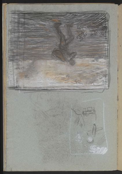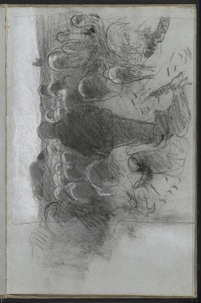 Editor: So, we're looking at Willem Witsen's "Zittende schaapherder," made around 1884 to 1887. It's a charcoal drawing on paper and I find the image kind of haunting in its stark simplicity. What stands out to you as you consider this drawing? Curator: Well, immediately I’m drawn to think about the socio-political context of the late 19th century and the romanticization of rural life. Drawings like these helped create an idea of an untouched, ‘authentic’ Dutch countryside, one often at odds with the realities of poverty and labor experienced by people like this shepherd. How might images like these have influenced policies and societal attitudes? Editor: That's interesting, because my first instinct wasn't to connect it to societal attitudes. I was thinking more about the purely aesthetic qualities. The contrast almost makes the figure disappear, though I like the technique. Curator: But can we truly separate the aesthetic from the social, especially when dealing with figuration? Witsen, exhibiting this drawing, wasn't just showcasing a technical skill, he was presenting a type. This image carries certain assumptions, about labor, class, and the countryside that need unpacking. Consider the potential buyers of such work. Editor: I suppose the romantic depiction of a shepherd could be interpreted differently depending on the viewer. Did the urban elite view it differently than someone from the rural working class? Curator: Exactly. This representation also played into growing nationalism. In the late 19th century, there was a cultural desire to solidify a Dutch identity rooted in tradition and landscape. How might we analyze this artwork as a product *of* this rising nationalism and not merely an innocent depiction *of* nature? Editor: So, it’s about connecting art with political movements and societal currents. Thank you, I’ve certainly learned to read the layers within seemingly simple imagery. Curator: And I am reminded how powerfully visual the construction of national identity can be, encouraging a continued awareness when encountering historical landscape imagery.