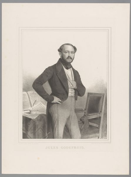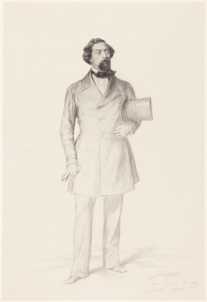 Editor: This is a print from 1872 titled "L. H. C. H. Holstein. Konseilspræsident," by J. Bothe. It seems very formal, and the man's pose is quite rigid. What visual symbols stand out to you in this piece? Curator: The hat he holds becomes almost a scepter of power in this context, wouldn't you say? Think about what hats signify: status, authority, belonging. Holding it, rather than wearing it, suggests a carefully controlled presentation of self. His mustache—those incredible whiskers—speak volumes too. Editor: How so? Curator: Facial hair, particularly in the 19th century, often denoted masculinity, strength, and even wisdom. Consider how often we see prominent figures of the time sporting similar styles. It becomes a signifier of their position within a particular social stratum and, perhaps, even their aspirations. The composition too is loaded with intent; observe how the artist has rendered the man, slightly elevated and looking above at something beyond. Doesn’t that posture speak of leadership and forward thinking? Editor: It’s interesting how something seemingly straightforward, like a portrait, can be so carefully constructed to convey a specific message. Curator: Precisely. Engravings like this one served as vital tools for shaping public perception. What memories and social continuities does it bring to mind? What cultural narratives are visible? These portraits are not merely representations of individuals, but carefully curated projections of power and societal ideals, designed to resonate within the visual language of their time. Editor: This has opened my eyes to interpreting portraits from the era in a different light! Curator: Agreed. Visual culture has immense impact, subtly crafting perceptions that stand the test of time.
